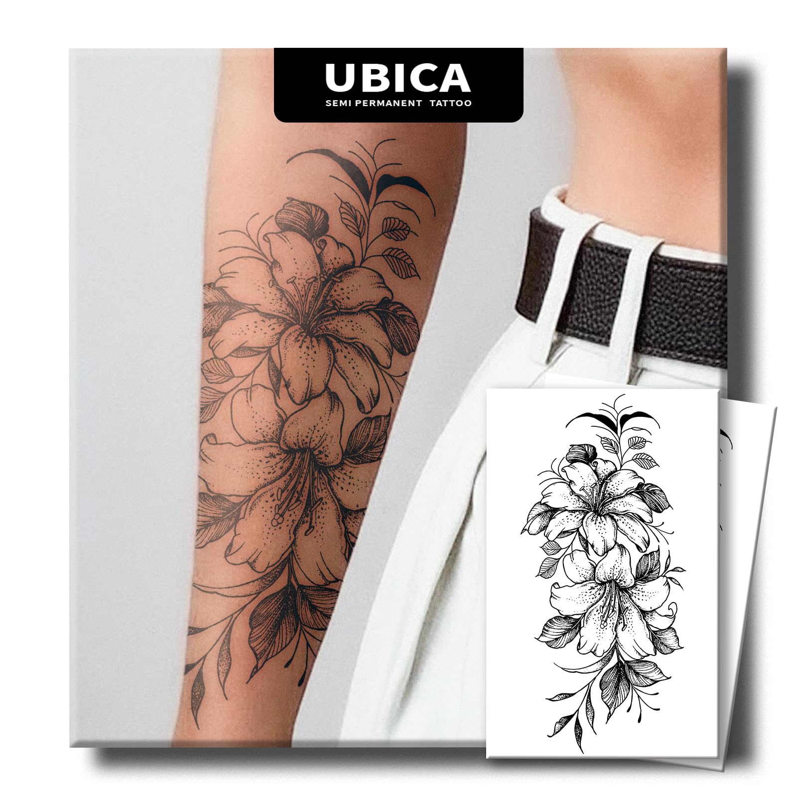Tattoo Tech, 2 Sheets Large Semi Permanent Tattoo, Lasts 7-15 Days Temporary Tattoos(Flowers with Branches), Waterproof and Non-Reflective, for Arm Thigh Back