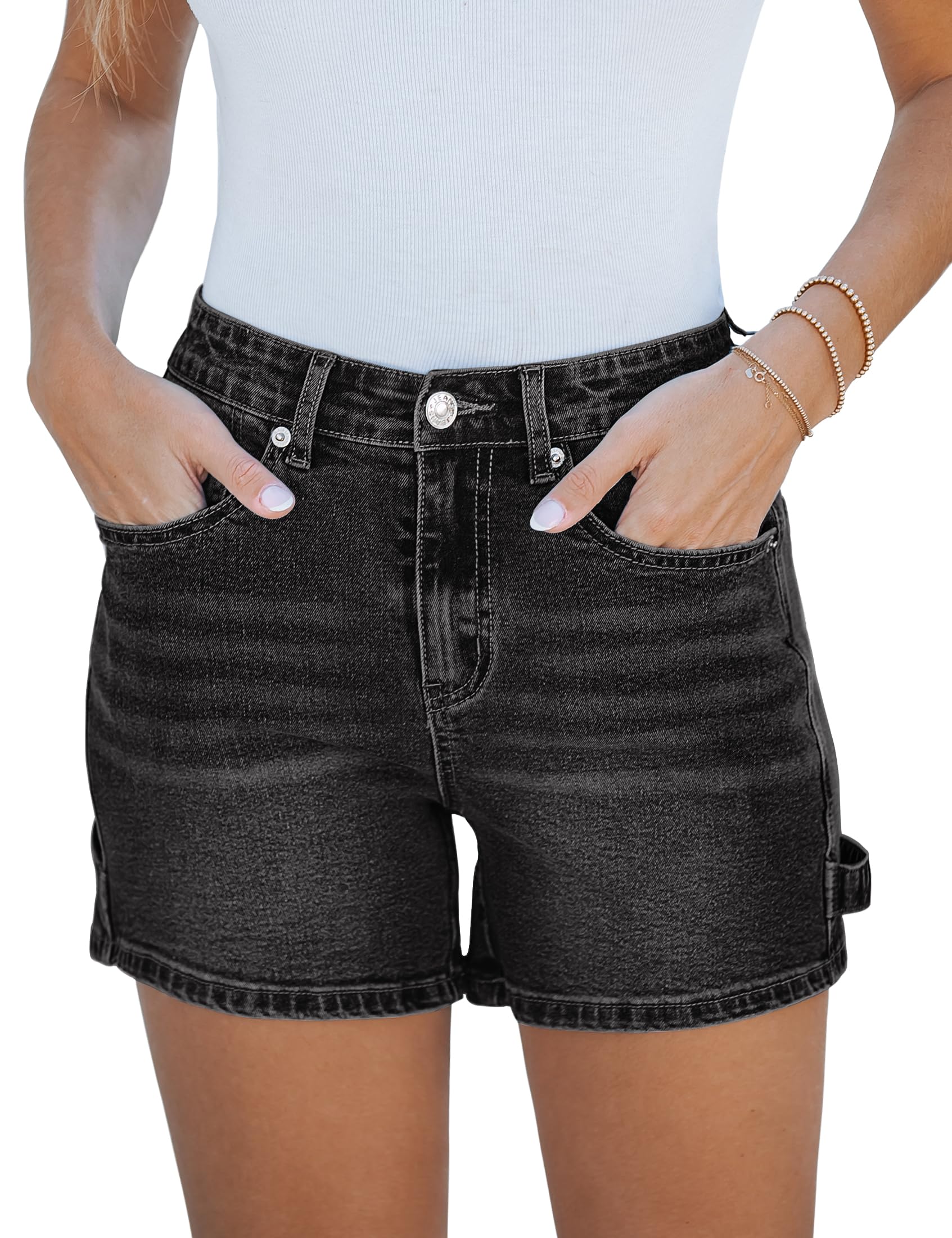 luvamia Jean Shorts for Women Trendy High Waisted Denim Shorts Carpenter Stretchy Summer Casual Mom Cut Off Jeans Shorts: X-Large Washed Black