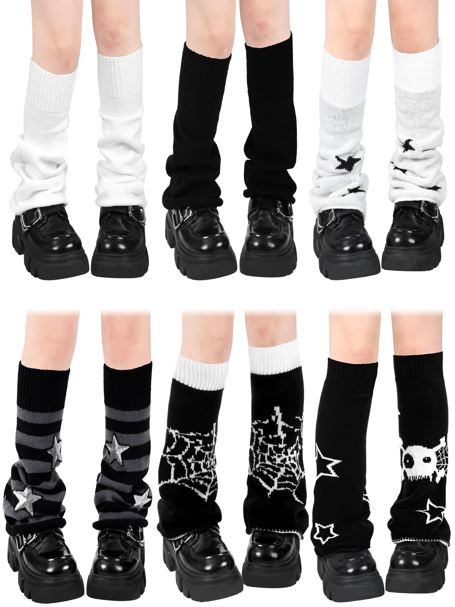 Geyoga 6 Pairs Y2k Accessories Harajuku Winter Leg Warmers Girls Gyaru Japan Kawaii Leg Warmers Goth Lolita Knit Boot Socks: Spider Web