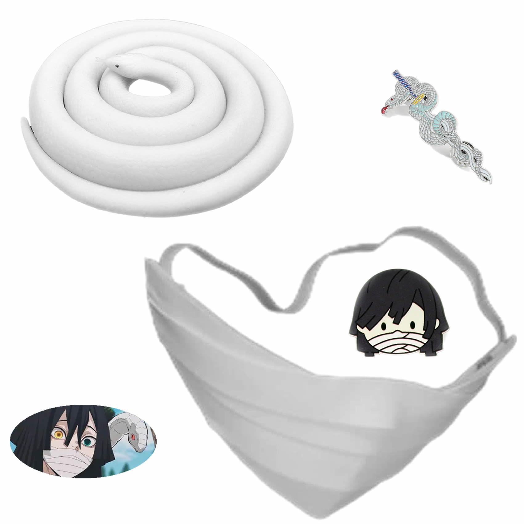 P1PSZ Iguro Obanai Mask and Badge Anime Iguro Obanai Cosplay Snake Shaped Plush Iguro Prop Accessories: Mask+badge*2+prop
