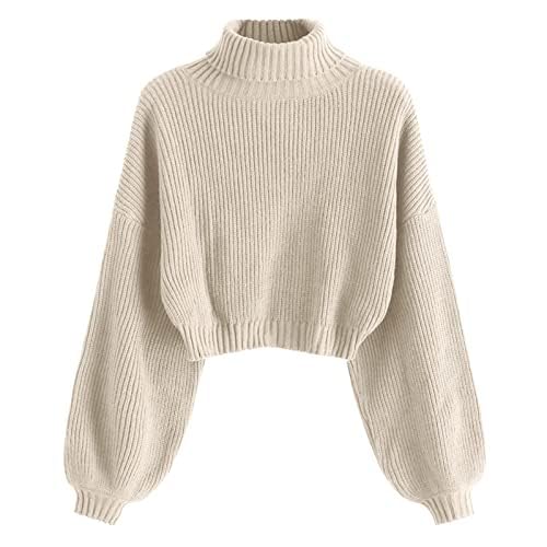 85% Cotton, 15% polyester, soft and stretchy, warmth while also making you look stylish Feature: turtle Neck sweater, Drop Shoulder, Lantern Sleeve jumper tops, Pullover Cropped Sweater Zaful pullover crop sweater features a turtleneck, ribbed trim, and long lantern sleeves for a casual and chic look Regular fit and very flattering, roll neck design with lantern sleeves. The knitted ribbed jumper shows off your charming curves Easily pair it with jeans, skinny pants, leggings for a casual everyday look. Perfect for casual, party, dating, night out, halloween and christmas, and daily wear in fall/autumn, spring and winter.