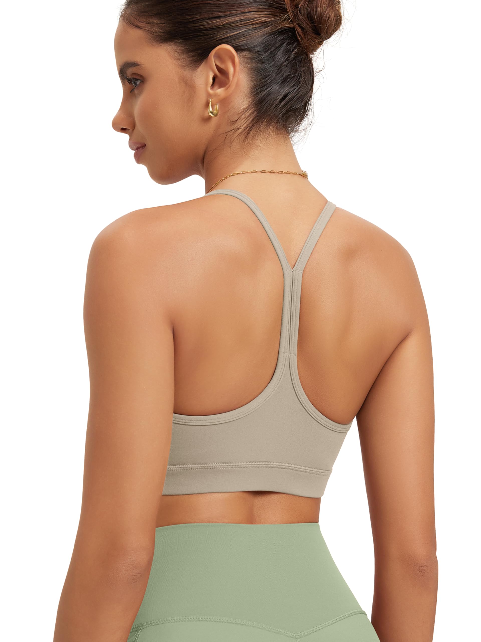 ODODOS Cloud Feeling Y Racerback Sports Bra for Women Wirefree Padded Strappy Yoga Bra: Small Dark Beige