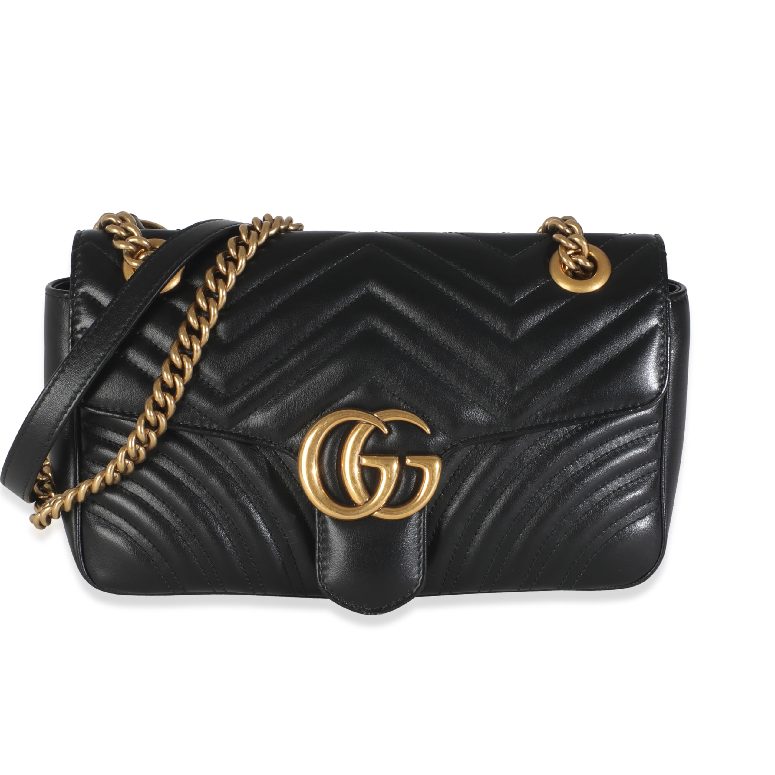Gucci, Pre-Loved Gucci Black Matelasse Calfskin Small GG Marmont Shoulder Bag, Black