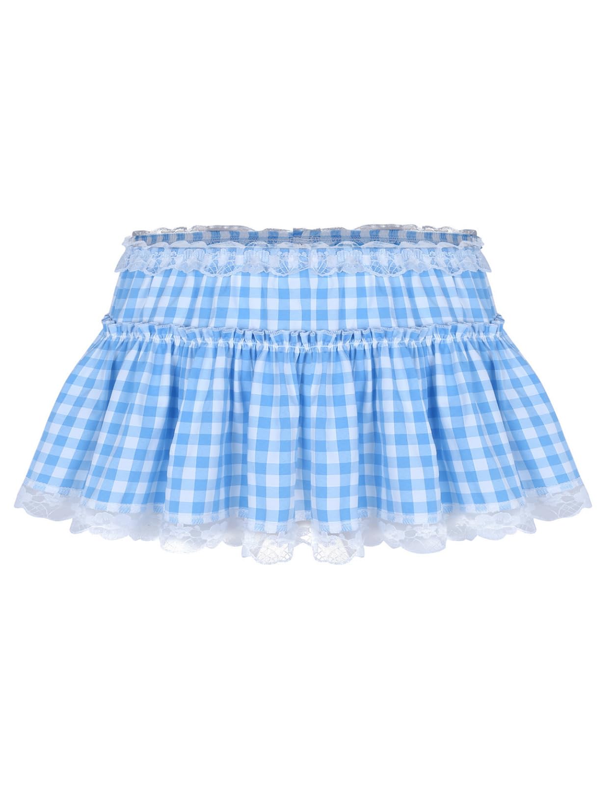 inlzdz Womens Lace Micro Mini Plaid Skirt Adults Sissy Crossdress Lingerie Lace Hem A-line Pleated Mini Skirt