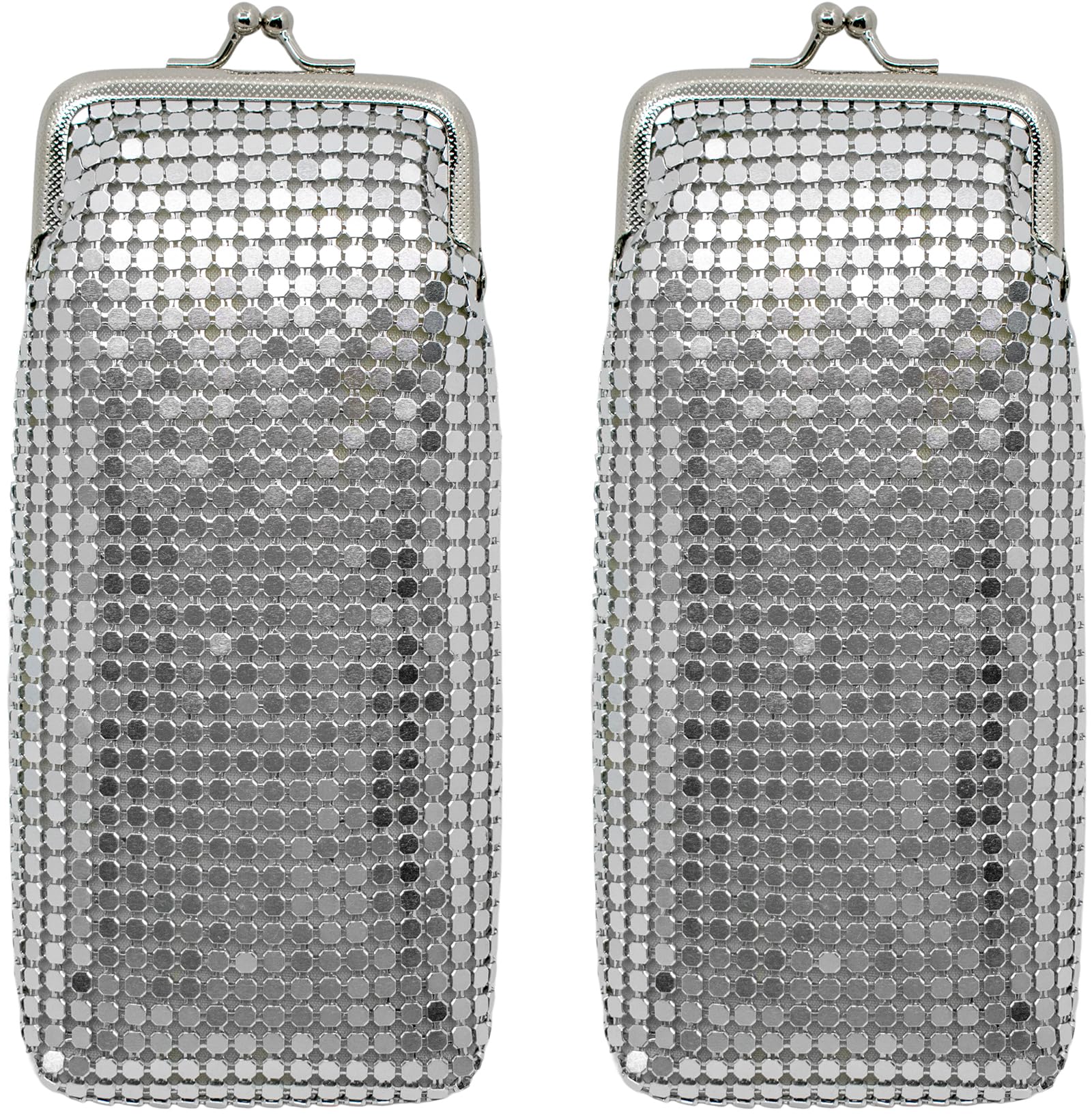 Set of 2 Vintage Soft Metallic Mesh Long Cigarette Case Purses with Lighter Pocket (4mm, Black Silver Gold): Silver 4 mm
