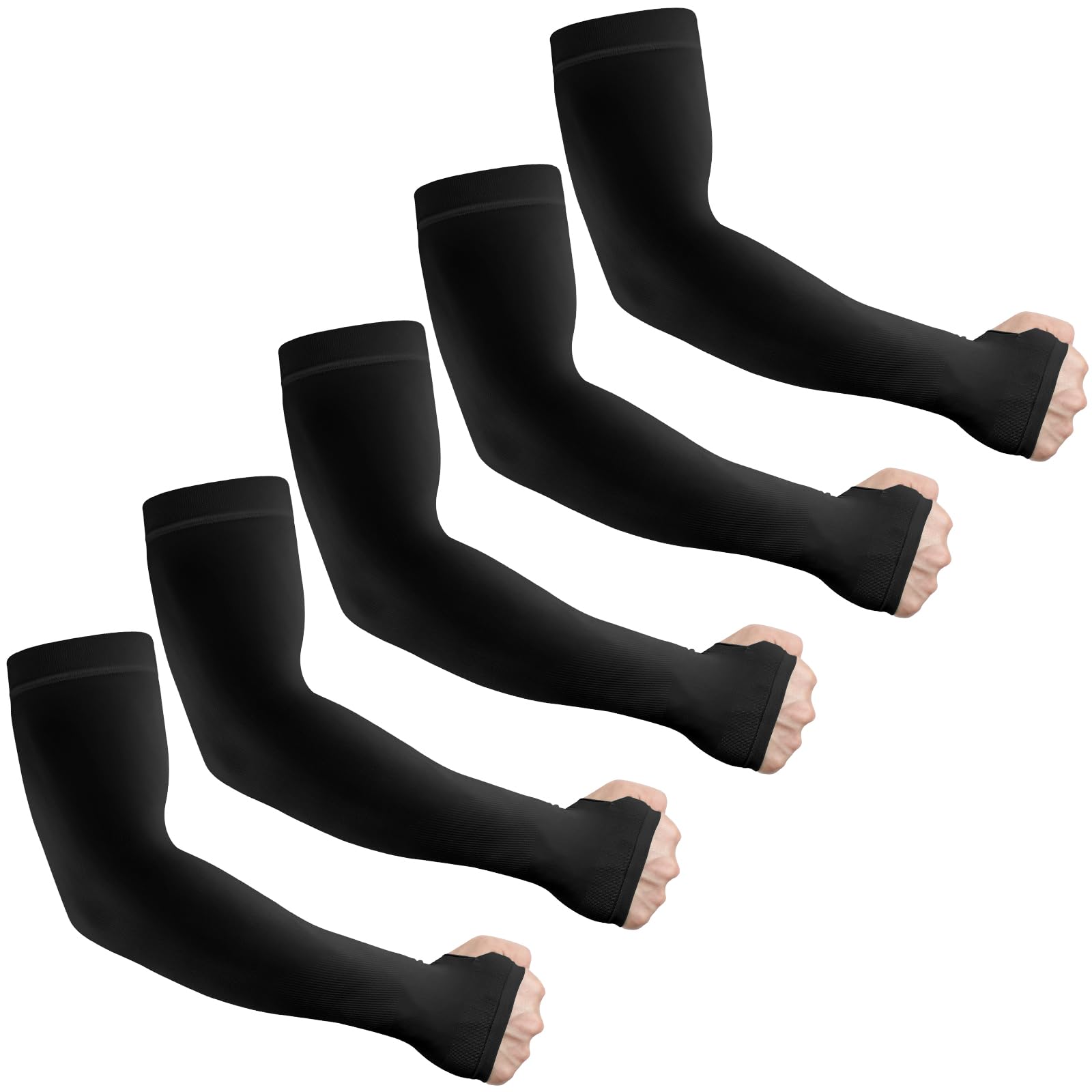 LUOLIIL VOE Sun Protection Cooling Arm Sleeves for Men &Women,Compression Sleeves for Football, Golf & Volleyball: 5 Pairs With Thumb Hole - Black