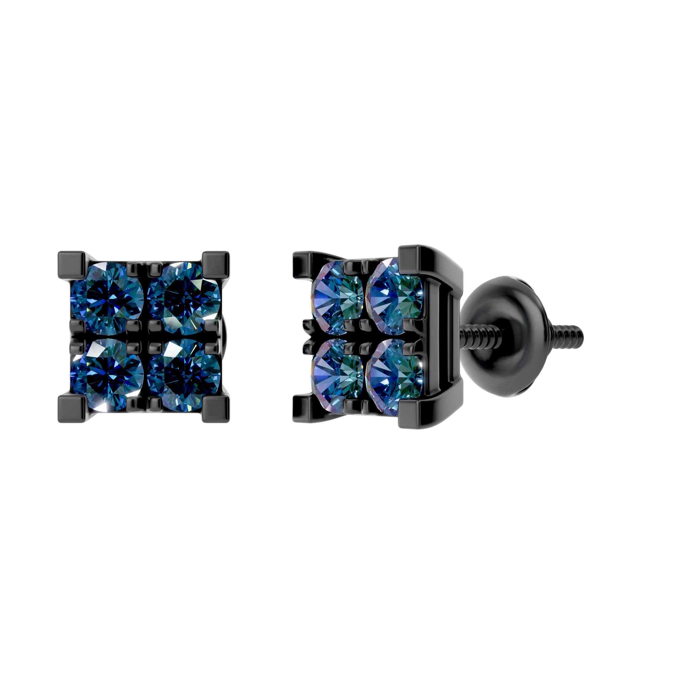 Dazzlingrock Collection 0.55 Ctw Round Blue Natural Diamond 6mm Square Hip Hop Iced Out Studs in Black Plated Sterling Silver, Unisex Design Ladies,Mens Real Natural Diamond Earrings: Screwback