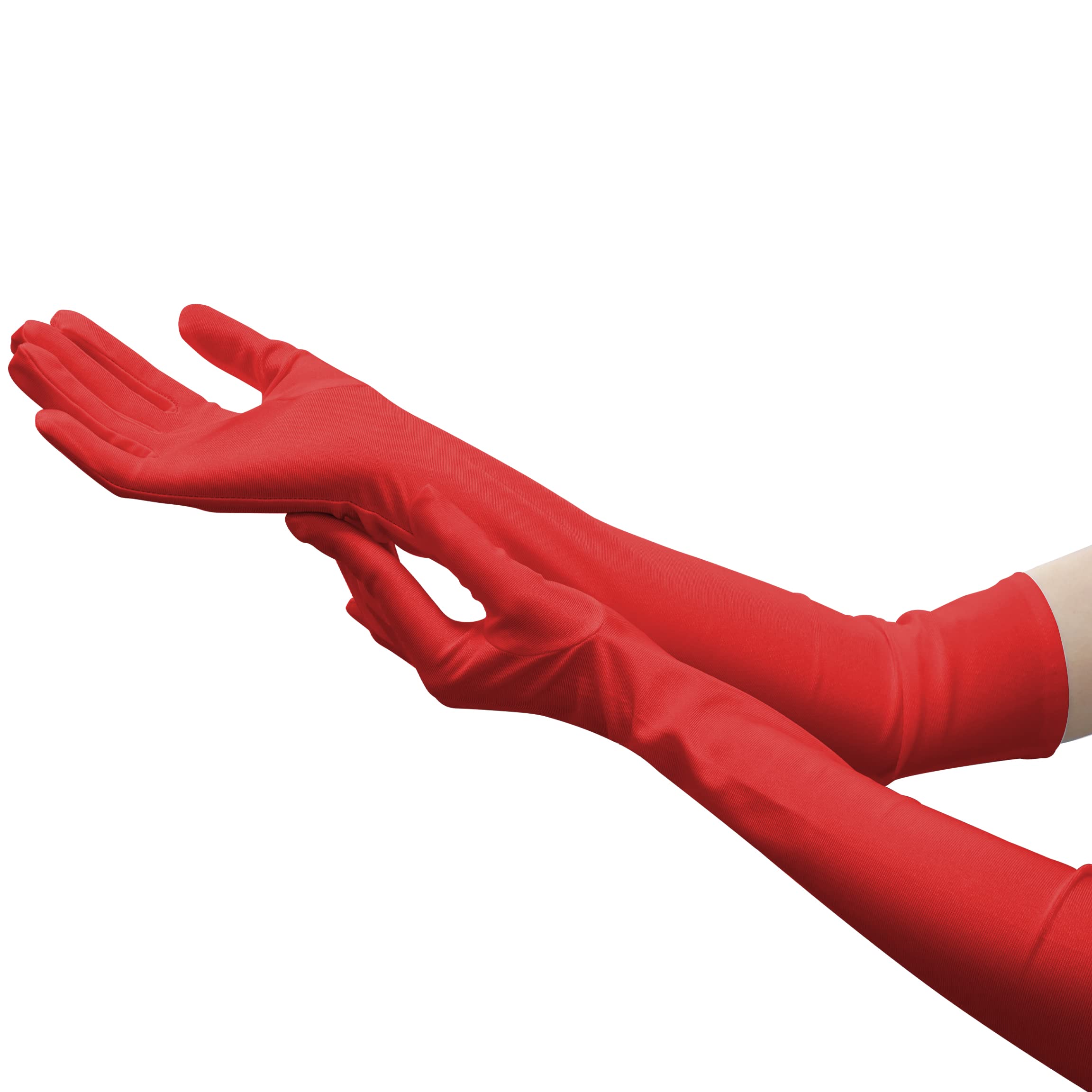 20in Women's Long Black Finger Gloves Elbow Length Red Gloves Material: Our mesh tulle glove is made of quality nylon and spandex, it is silky, smooth, stretchable and breathable. With soft feel, beautiful appearance, classic design and versatile color, give you comfortable wearing! Size: please check the second and third pictures before purchasing 20" long from the fingertip to the end of the glove, suitable for most adults. Classic Design: Women's sexy tulle gloves are exquisitely crafted to add femininity and cuteness to you. Tightly sewn, and moderately elastic, and the retro design makes you become the center of attention as soon as you appear. Our tulle gloves are the fashionable item that is very suitable for pairing, making you look more charming and attractive. Occasions: Elegant tulle gloves are perfect for opera performances, weddings, engagements, cosplay, prom, evenings, cocktail parties, dinner parties and other occasions. It is suitable for all seasons, perfect pairing with your fashion heels, luxury bags, exquisite necklace accessories for the perfect look! Service: If you have any question or problem about the gloves, please contact us. We will reply you in within 24 hours, and give you the solutions as well.