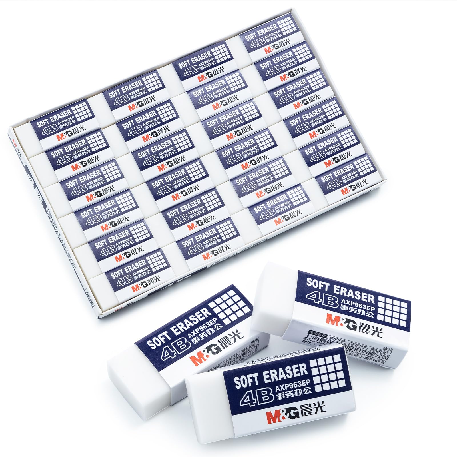 M&G 30 Pack Large Erasers Pencil Erasers, 4B White Rubber Eraser Rectangular Bulk for Kids School Students Office, Art Erasers for Drawing