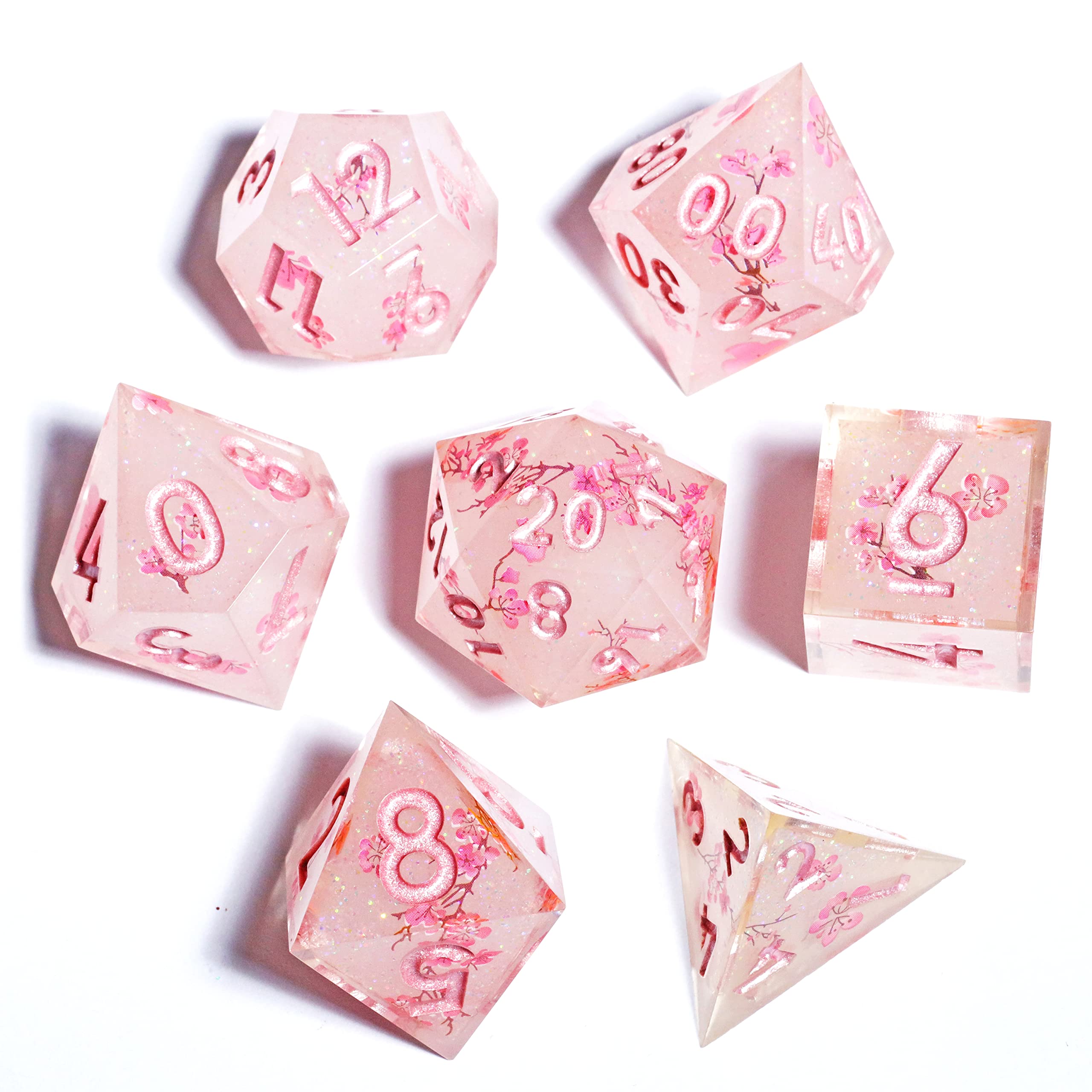 Product description: Handcrafted high-quality and high-transparency epoxy resin dice set with sharp edges and beautiful inclusions for DND TTRPG, Collections and Gifts. 7 PCS Dice Sets. Including D4,D6,D8,D10,D%,D12,D20. We always specialize in these artistic dice with an attitude of striving for perfection and a high degree of passion. We hope that these original handcrafted dice can bring better game experience and better mood for players. Specifications: Material: Epoxy resin Net weight: D4:0.1oz / D6:0.19oz / D8:0.17oz / D10:0.17oz/ D%:0.17oz / D12:0.19oz / D20:0.24oz Package net weight: 2.23oz Cleaning and storage: It can be wiped with a cotton cloth or deerskin flannel dipped in alcohol, or it can be washed in water. Store in a cool and dry place, Avoid prolonged exposure to the sun. warnings: Inedible. The edges on these dice are sharp, especially the D4. These dice are not meant for children or to be ingested. Please keep them away from pets, children, eyes, feet and mouths. Failure to do so could result in injury. Excellent craftsmanship: Each polyhedral dice is 100% handmade. Each designed dice has gone through the production process of manual pouring, sanding, polishing, inking and packaging. We insist on quality inspection after the end of each production process to ensure that the final dice are sent to dice lovers after at least 5 quality inspections. Eco-friendly raw materials: All MINI PLANET sharp resin dices use only the highest quality and high transparency environmentally friendly epoxy resin as the raw material. We use non-toxic and odorless epoxy to make DND dice. We absolutely don't allow bubbles in the dice, so our D&D dice are solid and balanced. Unique design: Artists have designed different styles of artistic dice through innovative ideas, making Mini Planet a leader in handmade resin dice. Holographic dice, gold foil dice, glitter dice, dried flowers dice, UV dice, layered dice, etc., various designs allow you to easily find the dice that matches your character. Bring your pride to the gaming table: These stunning dice with unique designs are sure to be the talk of your gaming table and they are sure to be your pride. Whether as Dungeons & Dragons players, dice goblins, dice collectors or as a gift, these exquisite dice will be excellent. You'll love the click clack of the dice as they bump into each other. Nice display case: All the dice are packaged in exquisite display boxes, the inner supports in the box are tailor-made according to the different shapes of dice. The customized box can better protect the dice from damage during transportation and is more convenient to carry. It is also ideal for collection and gift giving.