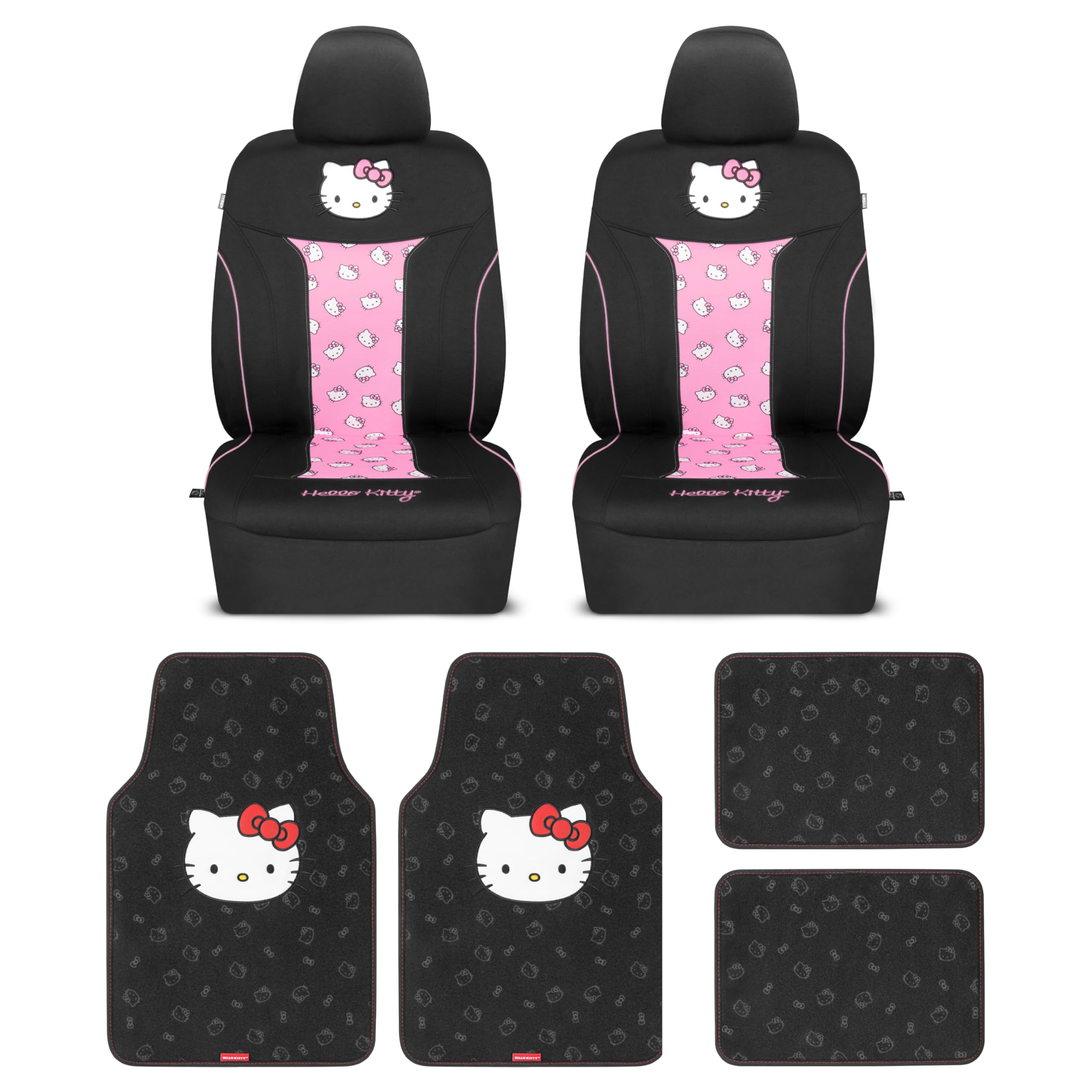 Carbella Cinnamoroll Car Seat Covers, Car Floor Mats, Steering Wheel Cover, Windshield Sun Shade for Car Gift Pack Car Air Freshener Black and Blue Hello Kitty Car Accessories for Women 9pc Combo: Covers & Carpet Mats-Red Hello Kitty
