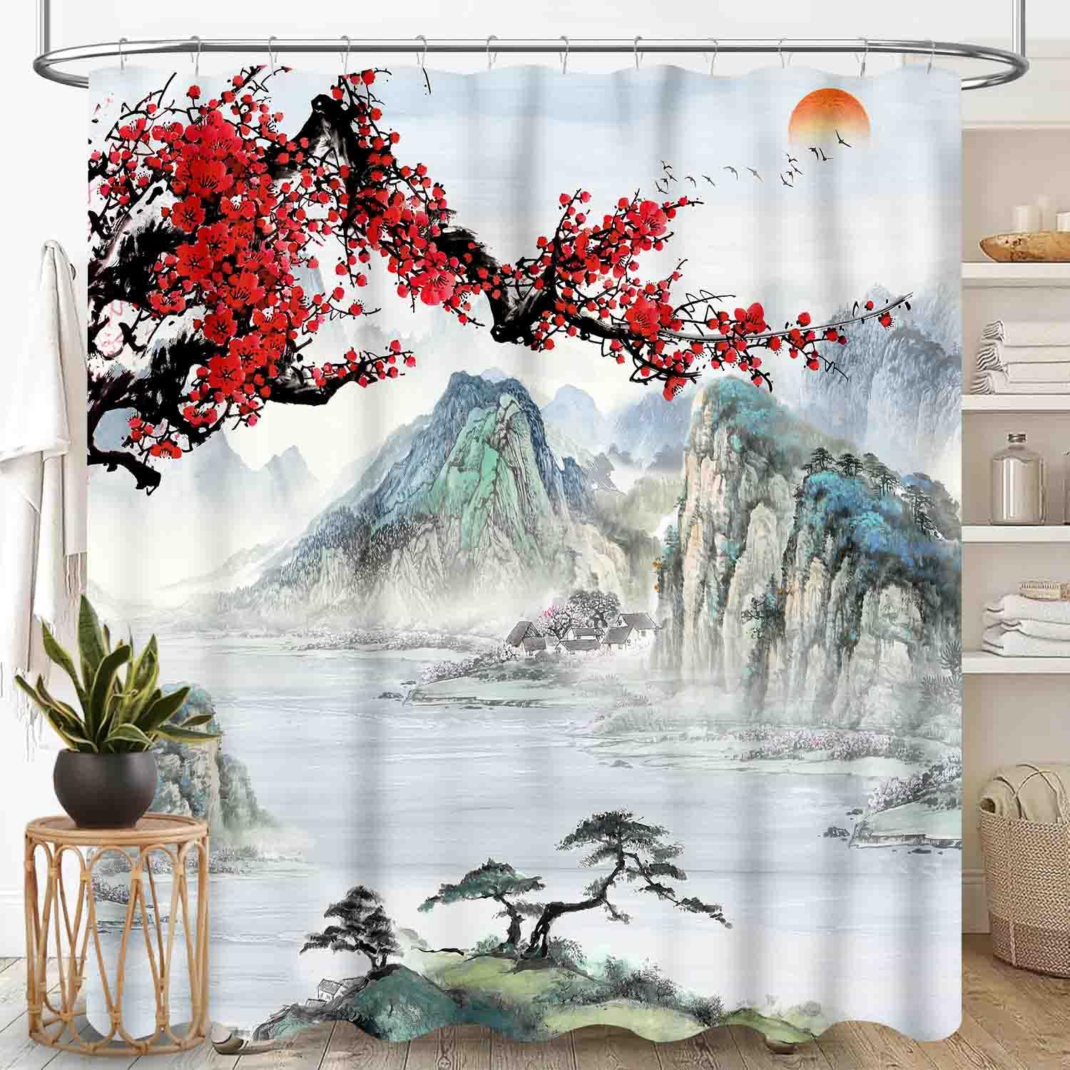 TKUYO Forest Shower Curtains, Gothic Misty Foggy Jungle Nature Forest Mountain Landscape Scenery Woodland Goth Dark BlackWaterproof Fabric Bathroom Shower Curtain Set with Hooks, 72"x72" Inch: 72"W x 78"L (Pack of 1) Japanese-01