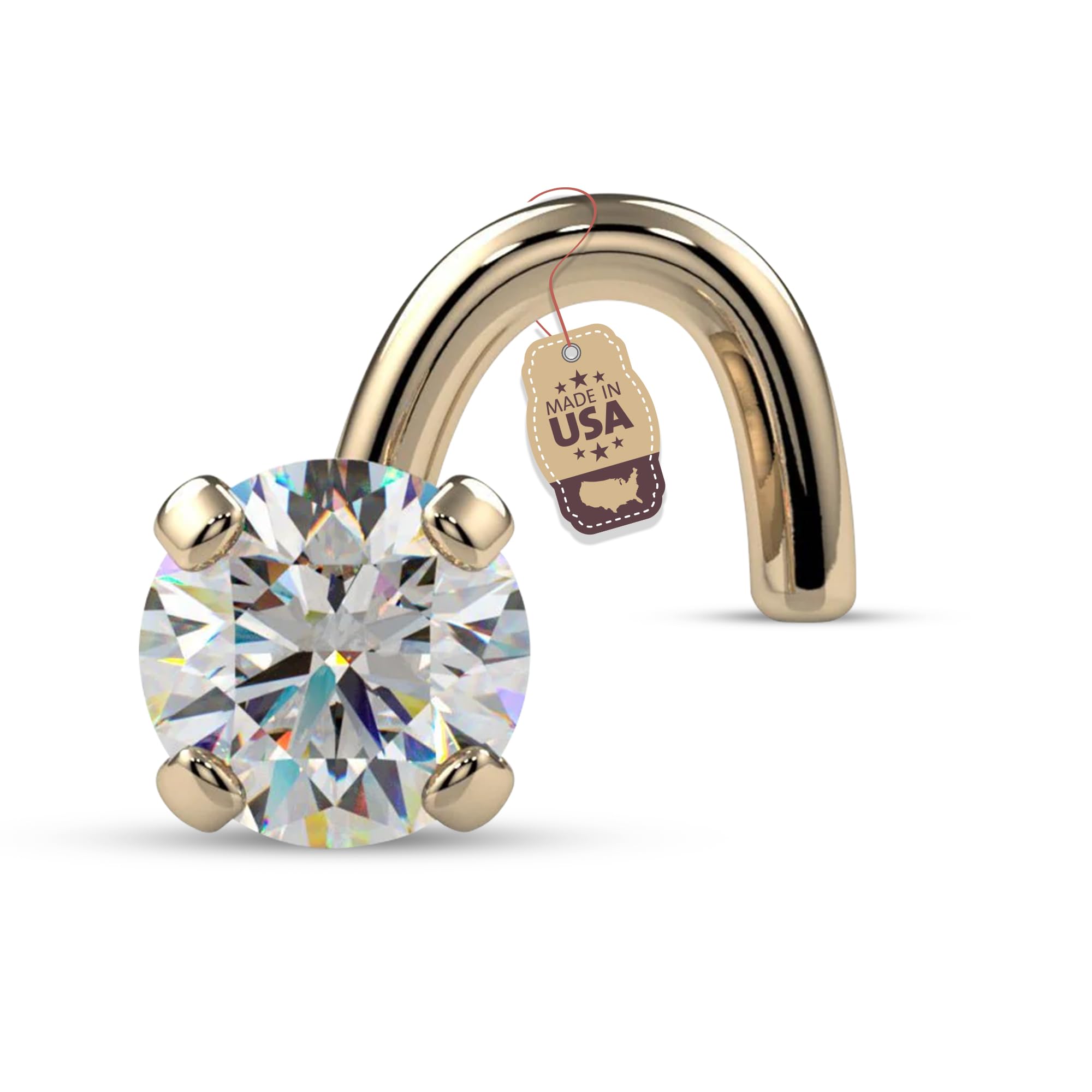 FreshTrends Diamond Nose Ring – 20G 2mm (0.03 ct. tw) Genuine Nose Stud – 14K Real Gold Nose Ring Twist Screw – Made in USA Nose Rings for Women