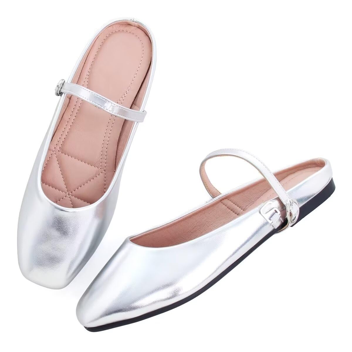 Size Chart US 5=Feet length 22.5cm=8.86"=CN 35 US 5.5=Feet length 23cm=9.06"=CN 36 US 6.5=Feet length 23.5cm=9.25=CN 37 US 7=Feet length 24cm=9.45"=CN 38 US 7.5=Feet length 24.5cm=9.65"=CN 39 US 8.5=Feet length 25cm=9.84"=CN 40 US 9=Feet length 25.5cm=10.04"=CN 41 US 9.5=Feet length 26cm=10.24"=CN 42 US 10=Feet length 26.5cm=10.43"=CN 43 Attention Please check the Size Chart for your best fitting,if you are WIDE FEET, we suggest ONE SIZE UP. Please contact us if you have any requests or questions about shoes or size, we'd love to help you. [MATERIAL]: Made of soft microfiber leather, Premium quality rubber soles are not only slip resistant but also more comfortable. [DESIGN]: These Women flat mules have elegant ankle strap, bringing an edgy look, you can adjustable width for the perfect fit. [VERSATILE]: The stylish mule shoes offer kinds of colors,Sliver,Sliver,Sliver,and brown. Look great with your dress, blouse, jeans, skirts and so on. [OCCASION]: Suitable for Girls and Women in any occasions, such as School Uniform Business, Prom Party, Wedding, Work Office, Vacation, Street and Other Daily Use, etc. [SIZE TIPS]: Our shoes are true to size, If you have wide feet, we recommend sizing up.
