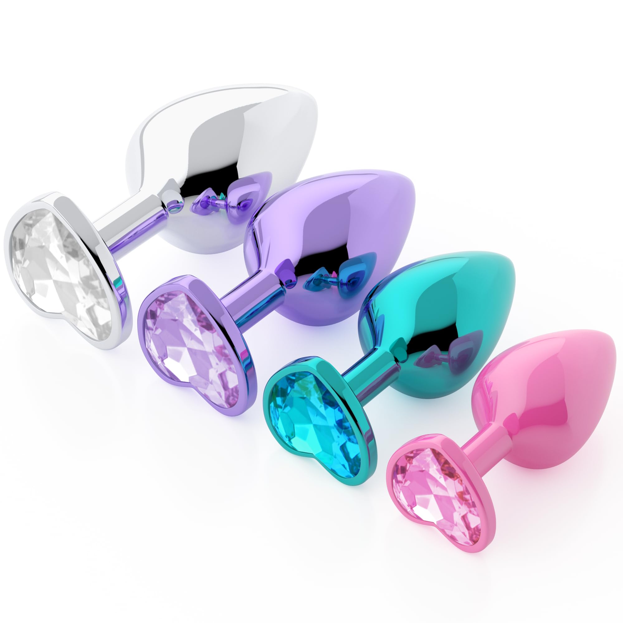 Anal Plug Beginner Set - 4 PCS Jewel Butt Plug Training Kit, Adult Anal Toys for Men, Women & Couples, Unisex Anal Trainer for Beginners to Advanced, P-Spot & Pleasure Enhancer: Heart Shaped Mixing