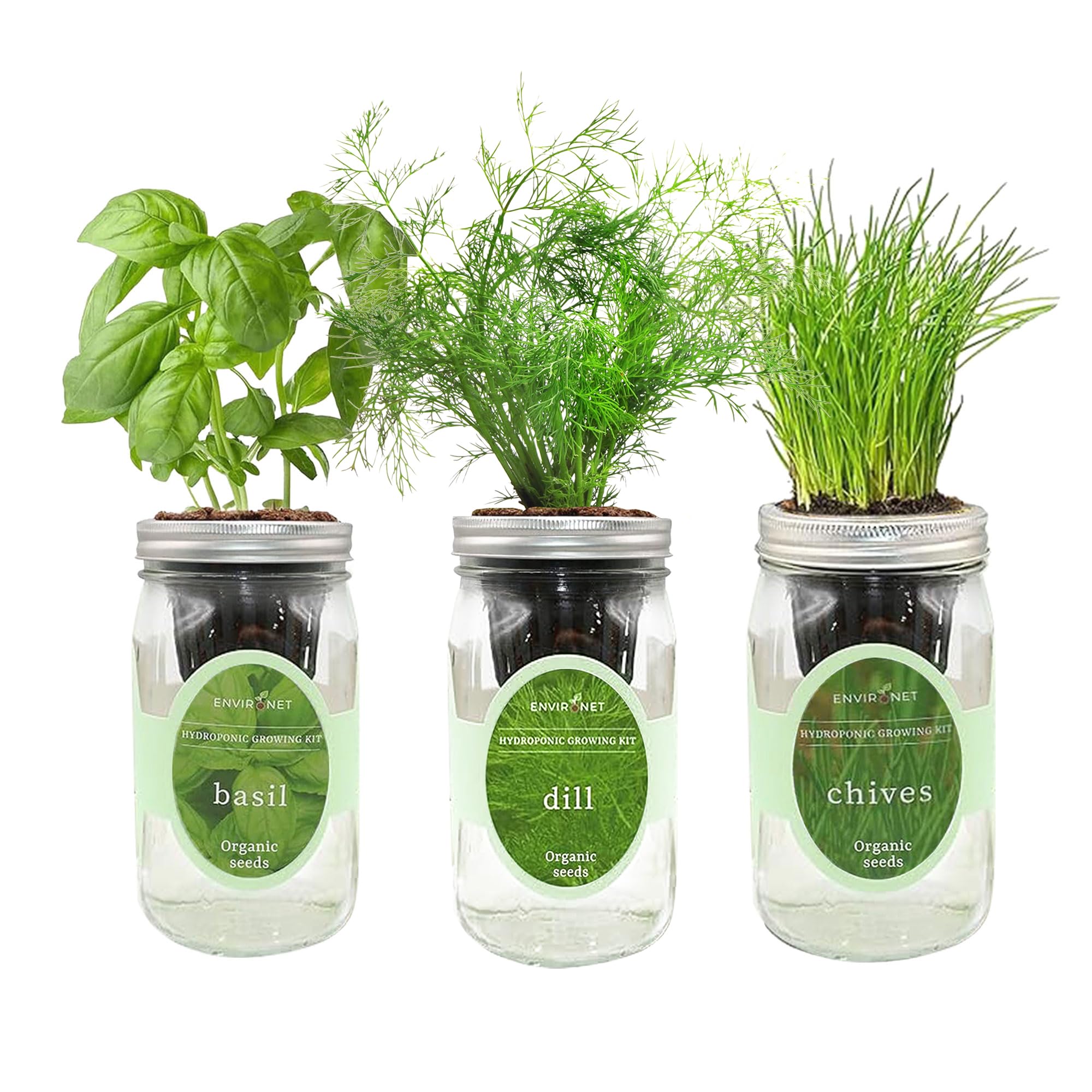 Environet Hydroponic Herb Growing Kit Set, Self-Watering Mason Jar Herb Garden Starter Kit Indoor, Windowsill Herbs Garden, Grow Your Own Herbs from Organic Seeds (Rosemary, Lavender, Oregano)