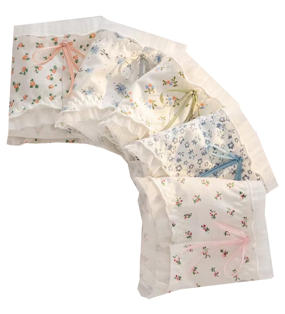 Brexiamin 5 Pack Women Teens Pink Cotton Brief Japanese Kawaii Anime Lolita Panties Underwear Bikini Panty Set: Large White