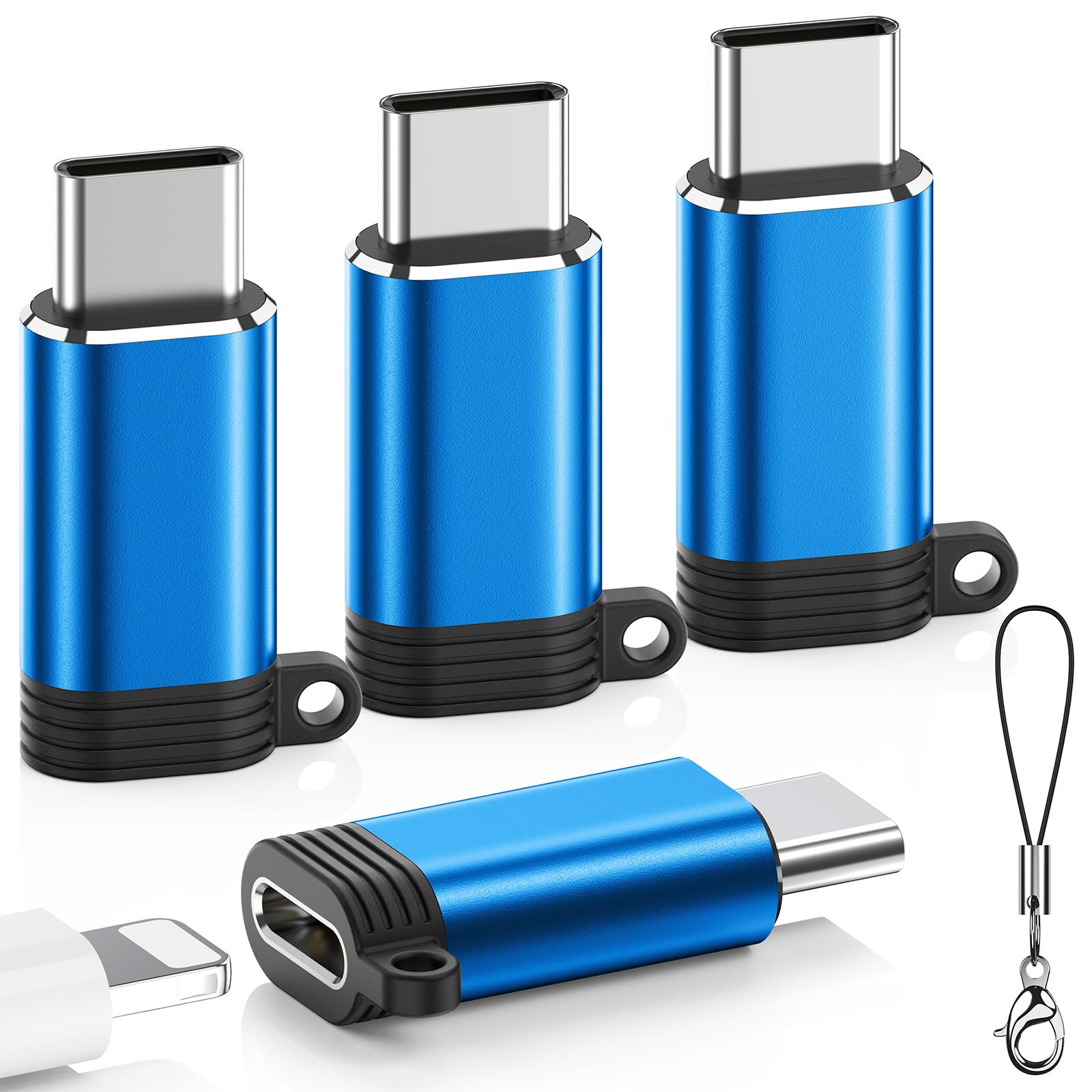 LERTOSEN Lightning to USB C Adapter 4 Pack, Fast Charging & Data Sync for iPhone 15/16/17 Pro/Pro Max, Charger Adapter Accessory (Not for Audio/OTG)-Blue: 4 Pack Blue