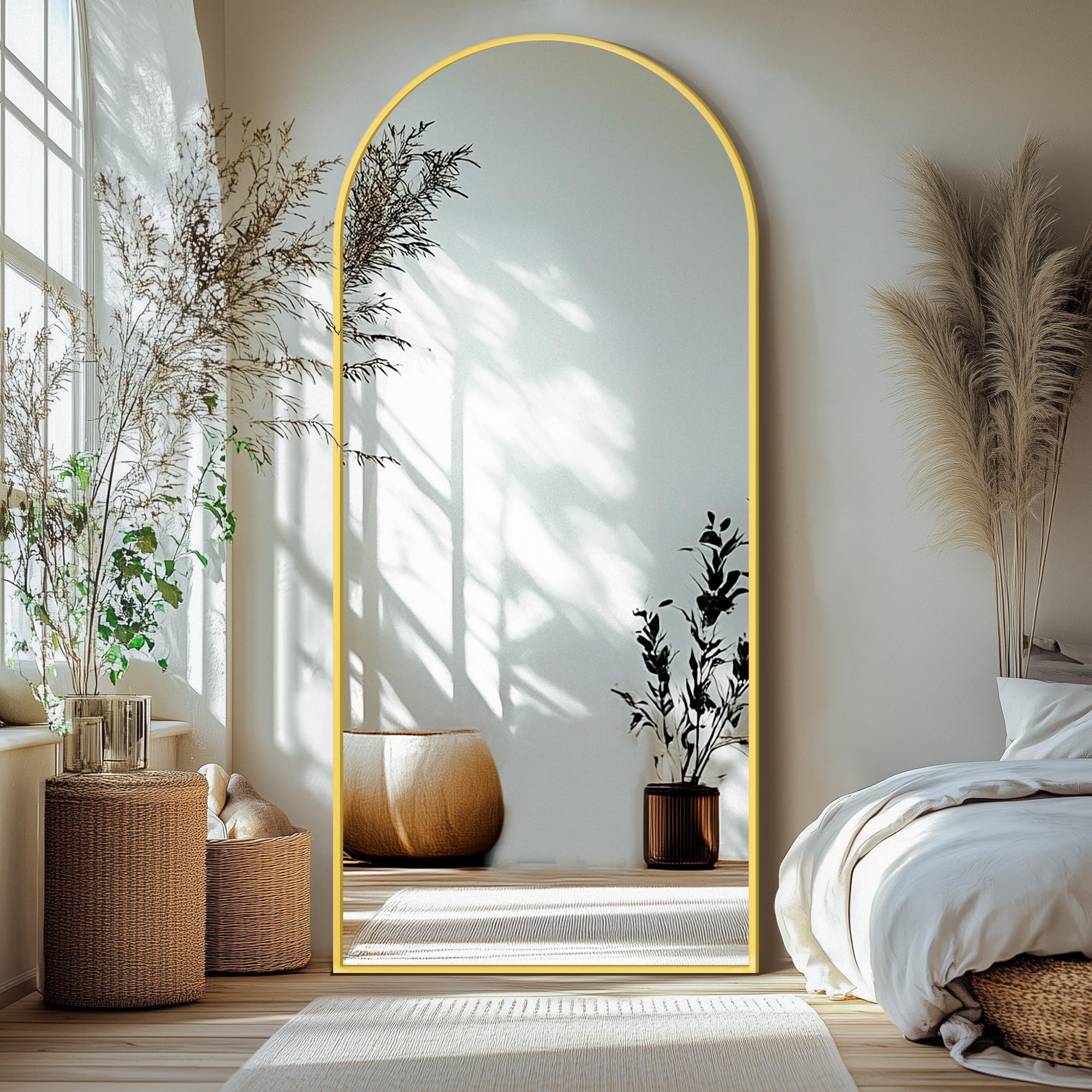 Delma Arched Mirror Full Length,Standing Mirror Full Body,Large Floor with Stand for Wall Entryway Door Bedroom Bathroom Living Room: Gold Frame 75"L x 35"W