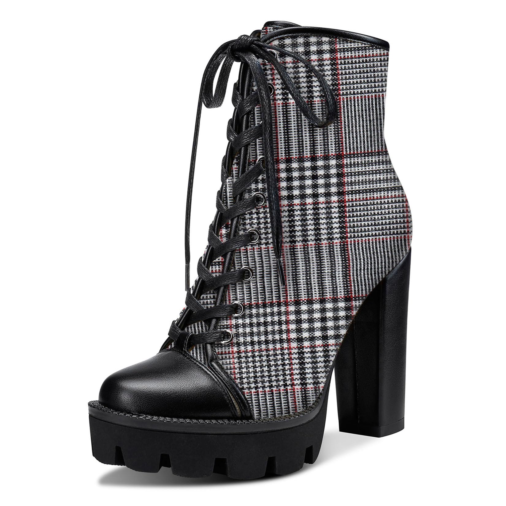 Castamere Womens High Heel Platform Lace Up Booties Chunky Heel Ankle Boots With Zipper Round Toe 12CM Heels: 11.5 Grey Plaid