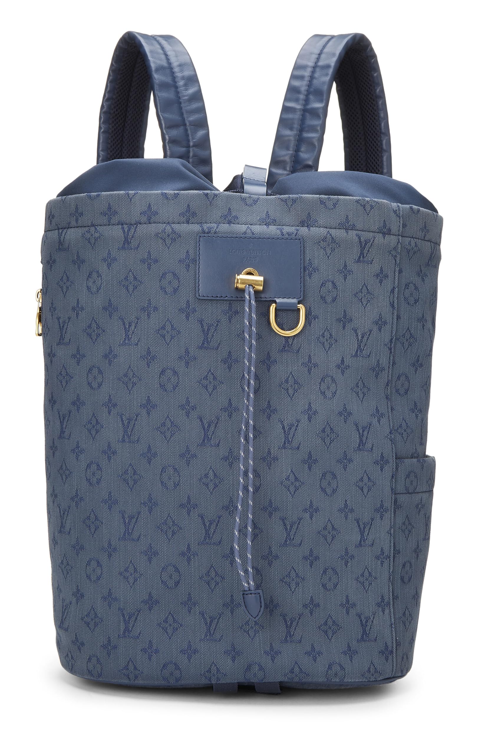 From 2019, this modern interpretation of the classic backpack silhouette is rendered here in blue denim with the classic Louis Vuitton monogram throughout. Features exterior pockets, two leather back straps and a drawstring closure. About the Monogram Print: If you love Louis Vuitton, you are no stranger to the classic Monogram Print. First introduced in the year 1896 by Georges Vuitton, the print was created to stop counterfeiters from copying the brands designs. The repeated pattern is made up of interlocking L and V initials in a serif font, and flowers inspired by Japanese and Oriental designs. The canvas was made to be durable and water resistant which makes it the perfect for everyday use. Hand Wash Only Imported Pre-Loved Condition: Excellent; Light tarnishing on hardware, light discoloration throughout exterior denim Length: 14" (35 cm), Height: 15" (38 cm), Depth: 8" (20 cm) Made in France Two Leather Back Straps Drawstring Closure