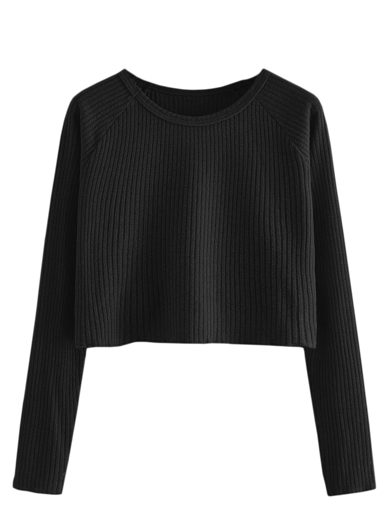 SweatyRocks Women's Casual Solid Ribbed Knit Raglan Long Sleeve Crop Top T Shirt