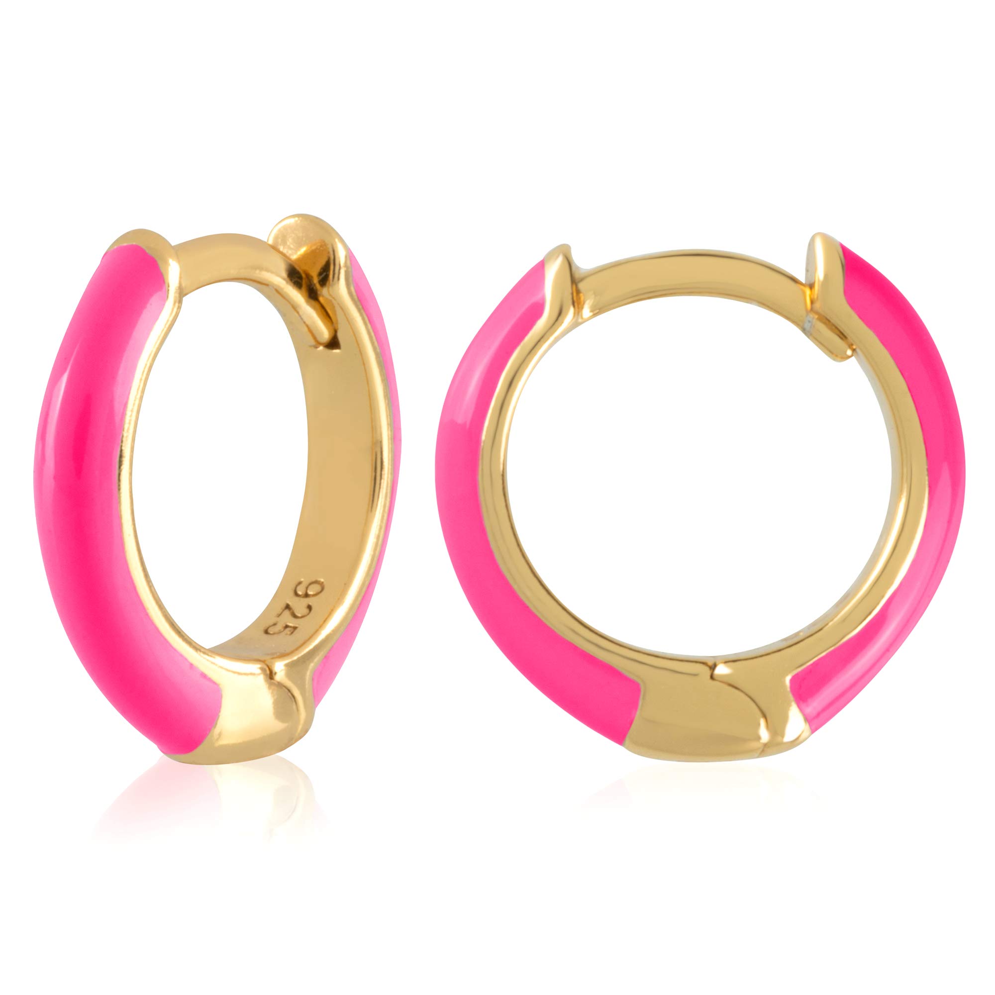 14K Gold Plated Sterling Silver Enamel Color Huggie Hoop Earrings for Women – Wide Range of Vibrant Color Options Available