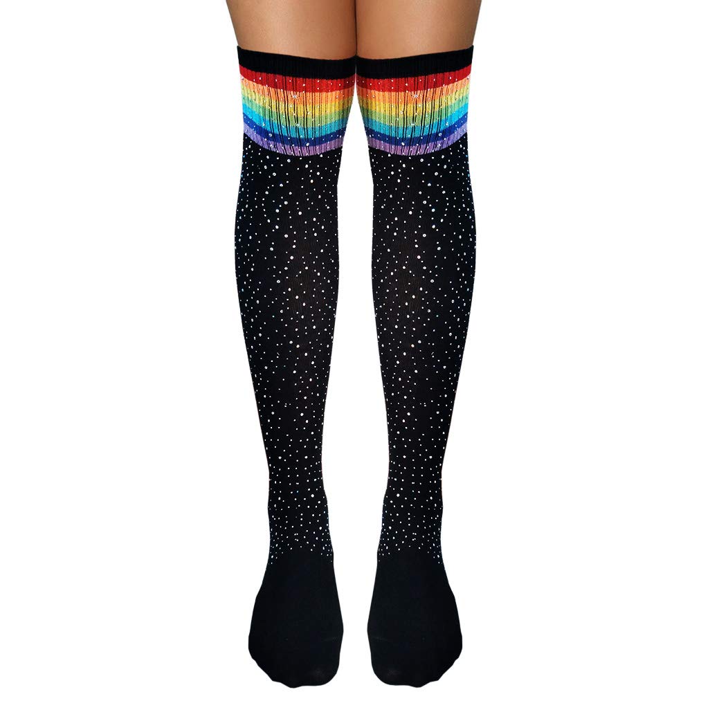 SATINIORSATINIOR Extra Long Socks Thigh High Cotton Socks Extra Long Knee Boot Stockings for Women: One Size Black, White