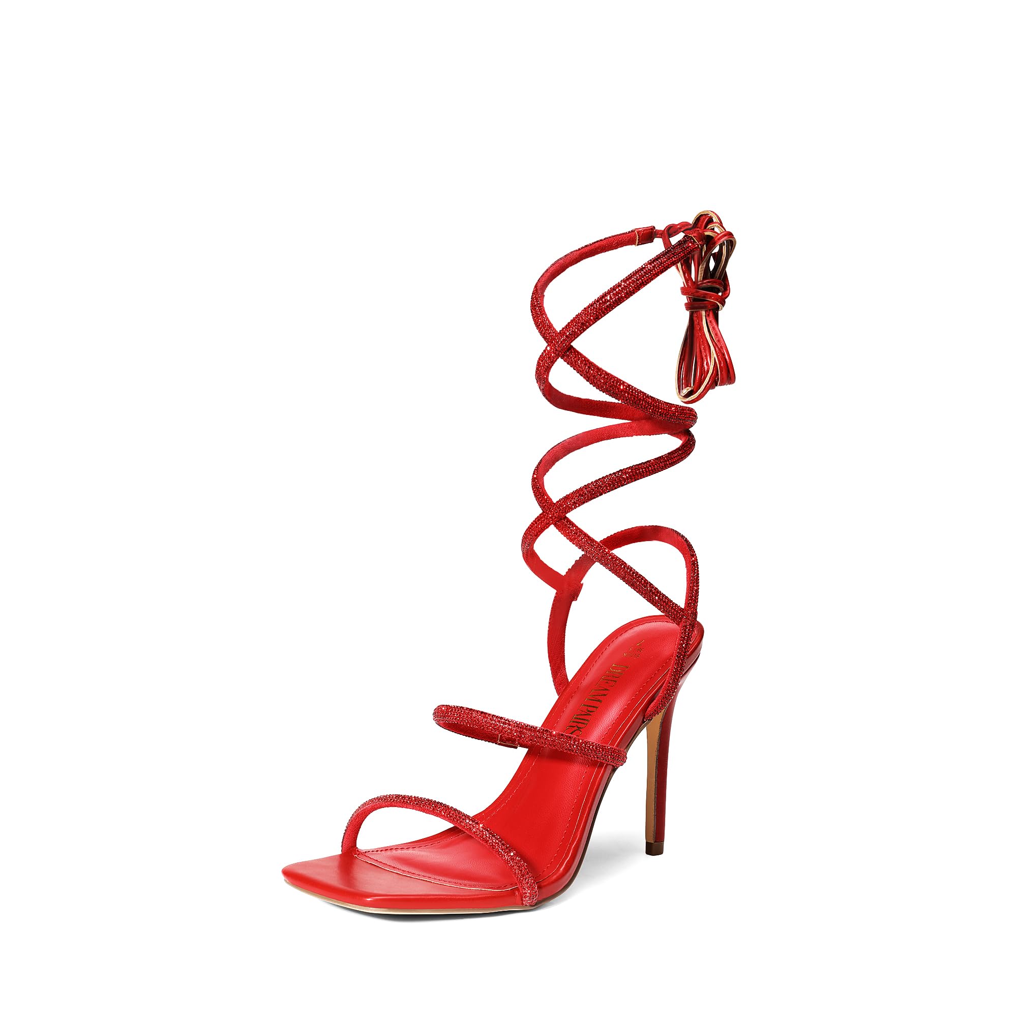 Universal BrandsDREAM PAIRS High Heels Stilettos for Women - Strappy Gladiator Sexy Square Toe Open Toe Dressy Pumps Sandals: 7.5 Red