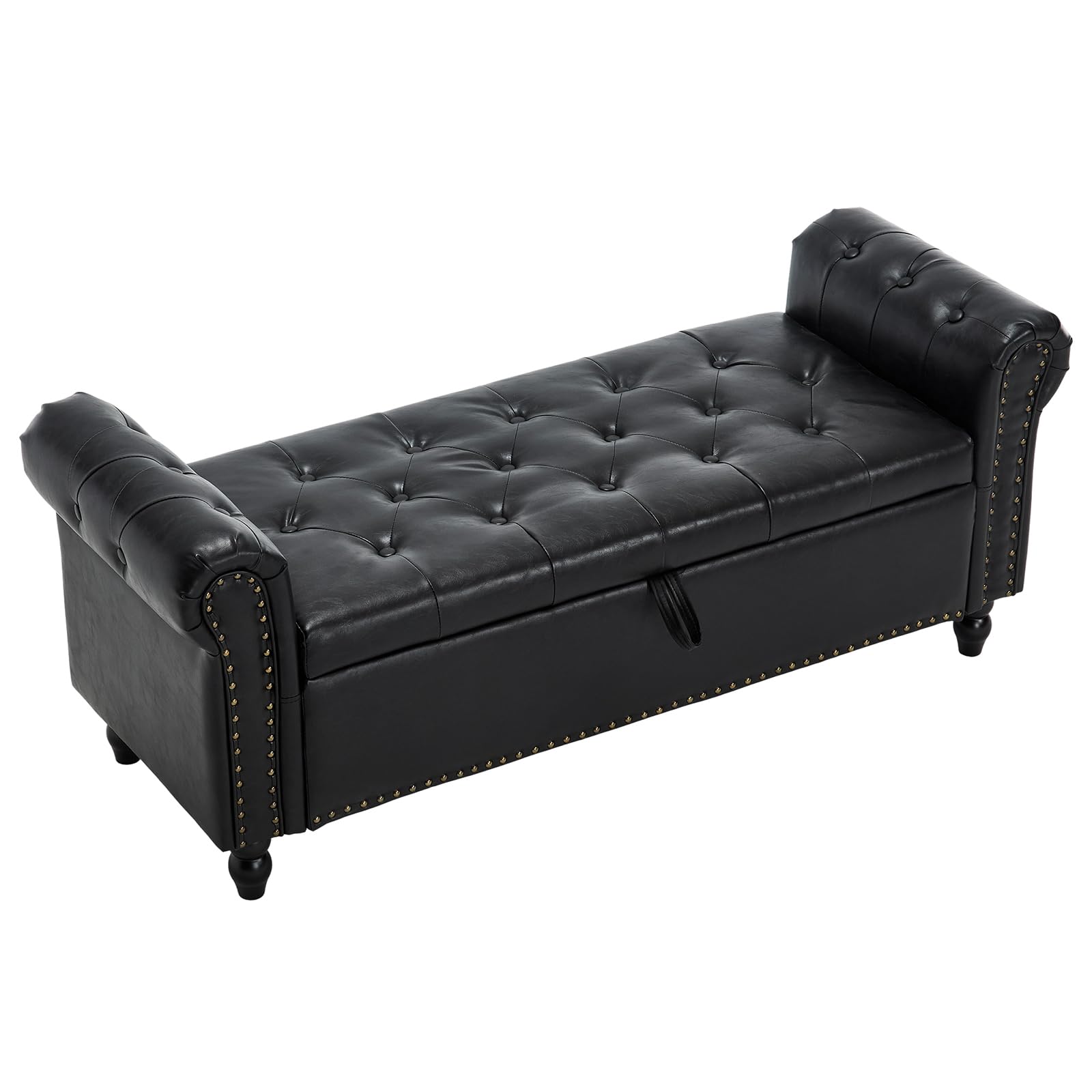 FurnilivingFurniliving Storage Ottoman Bench, Leather Benches End of Bed Bench with Solid Wood Legs Upholstered Ottoman Bench with Storage Indoor Bench for Living Room with Rolled Arm, Entryway, YellowBrown: 19.69"D x 55.12"W x 21.65"H Black-pu