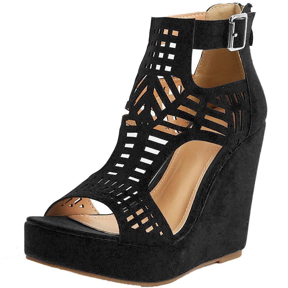 Universal BrandsAOSPHIRAYLIAN Wedge Sandals for Women Open Toe Cutout Platform Bohemian Sandals High Heel Buckle Ankle Strap Comfy Summer Sandals: 7.5 Black