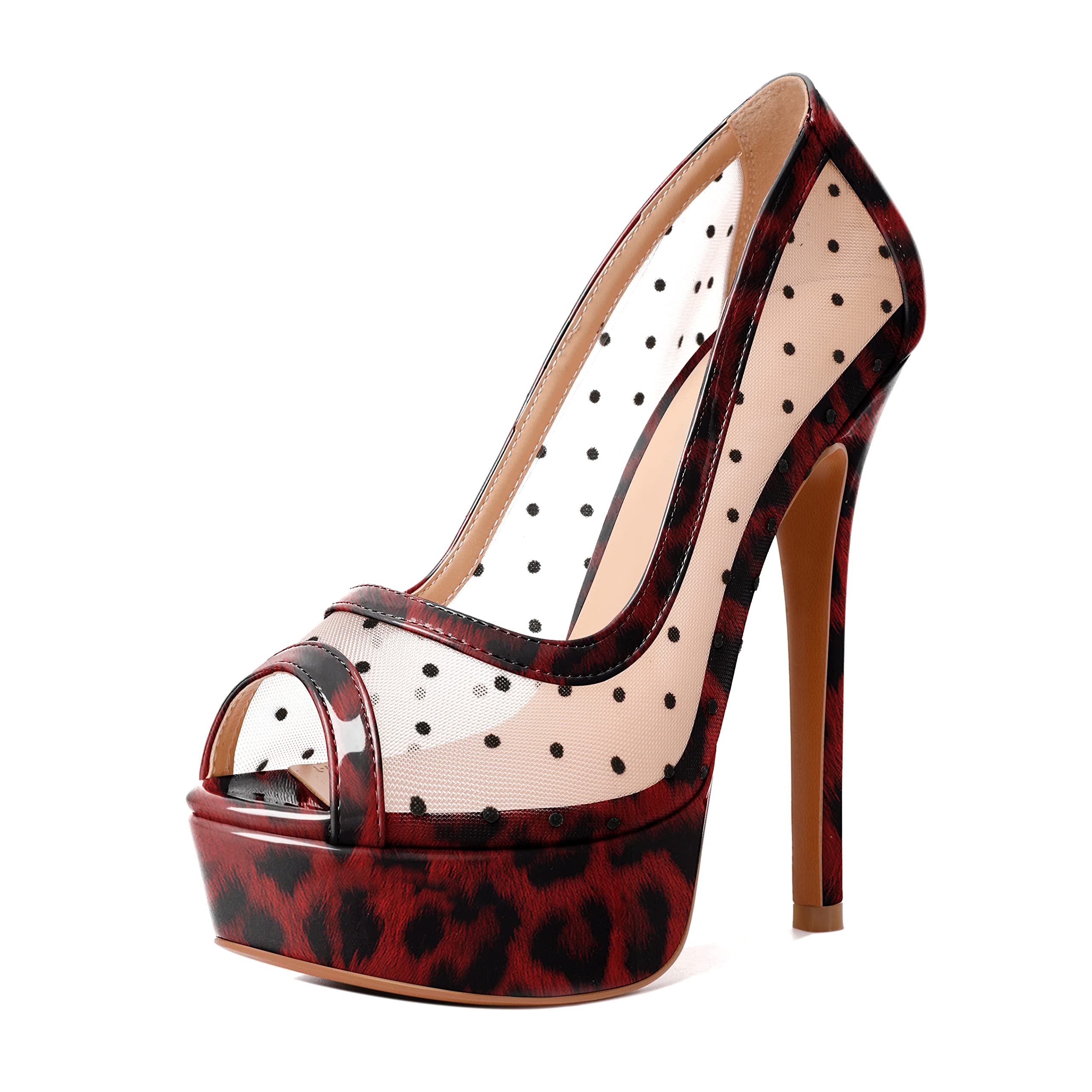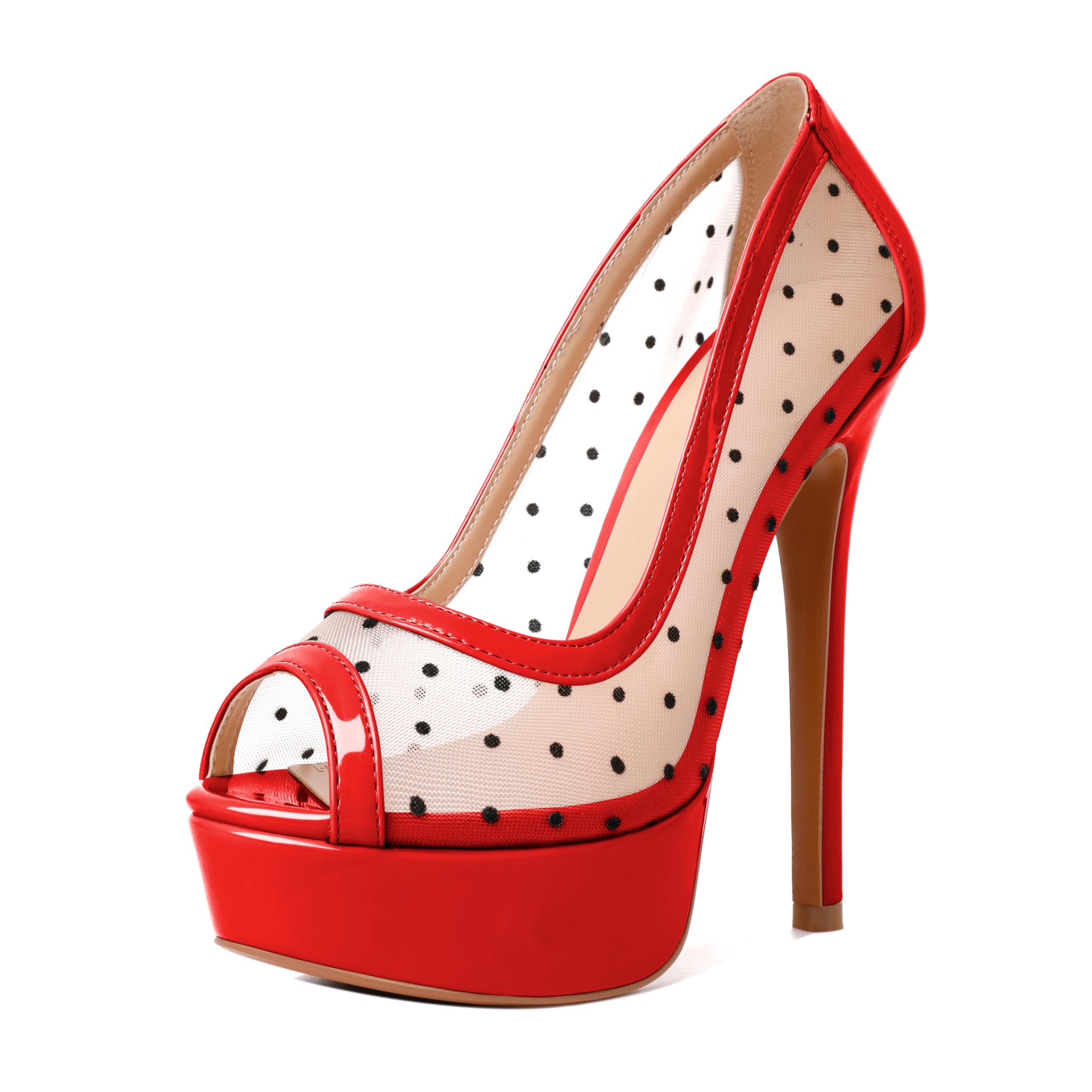 Universal BrandsMERUMOTE Women's Platform Stiletto Heels Shoes Peep Toe Pumps 6 inch Heels for Dress Wedding Party: 7.5 Slingback Red Black