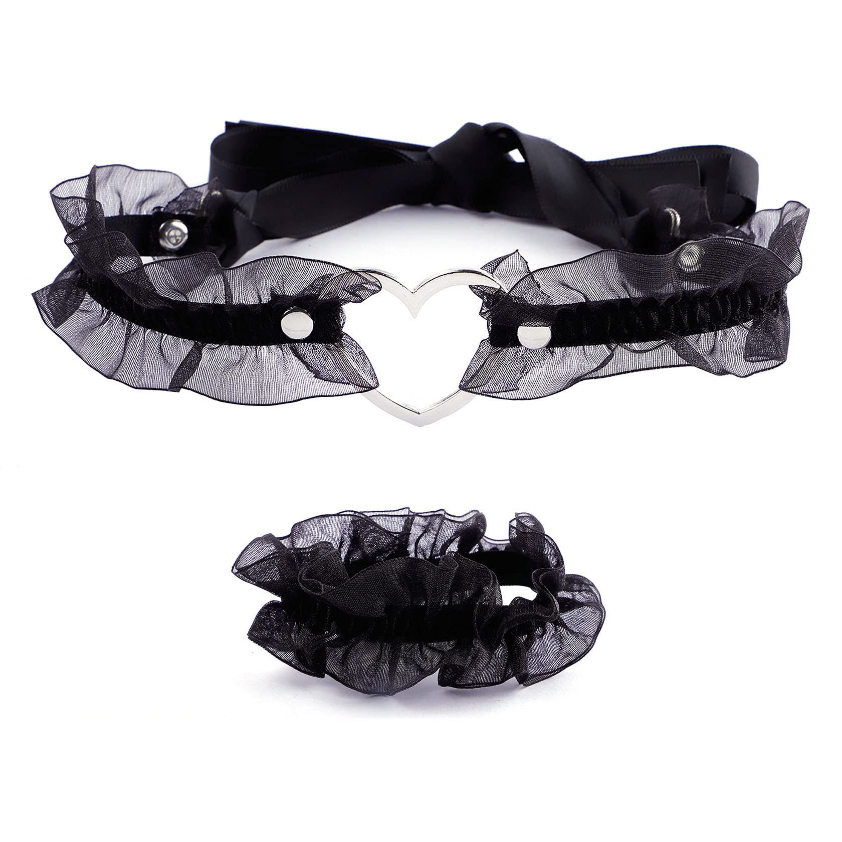 MILAKOOMILAKOO Black Punk Choker Charm Stretch Gothic Tattoo Chokers Necklace and Bracelet Set for Women: C-Black