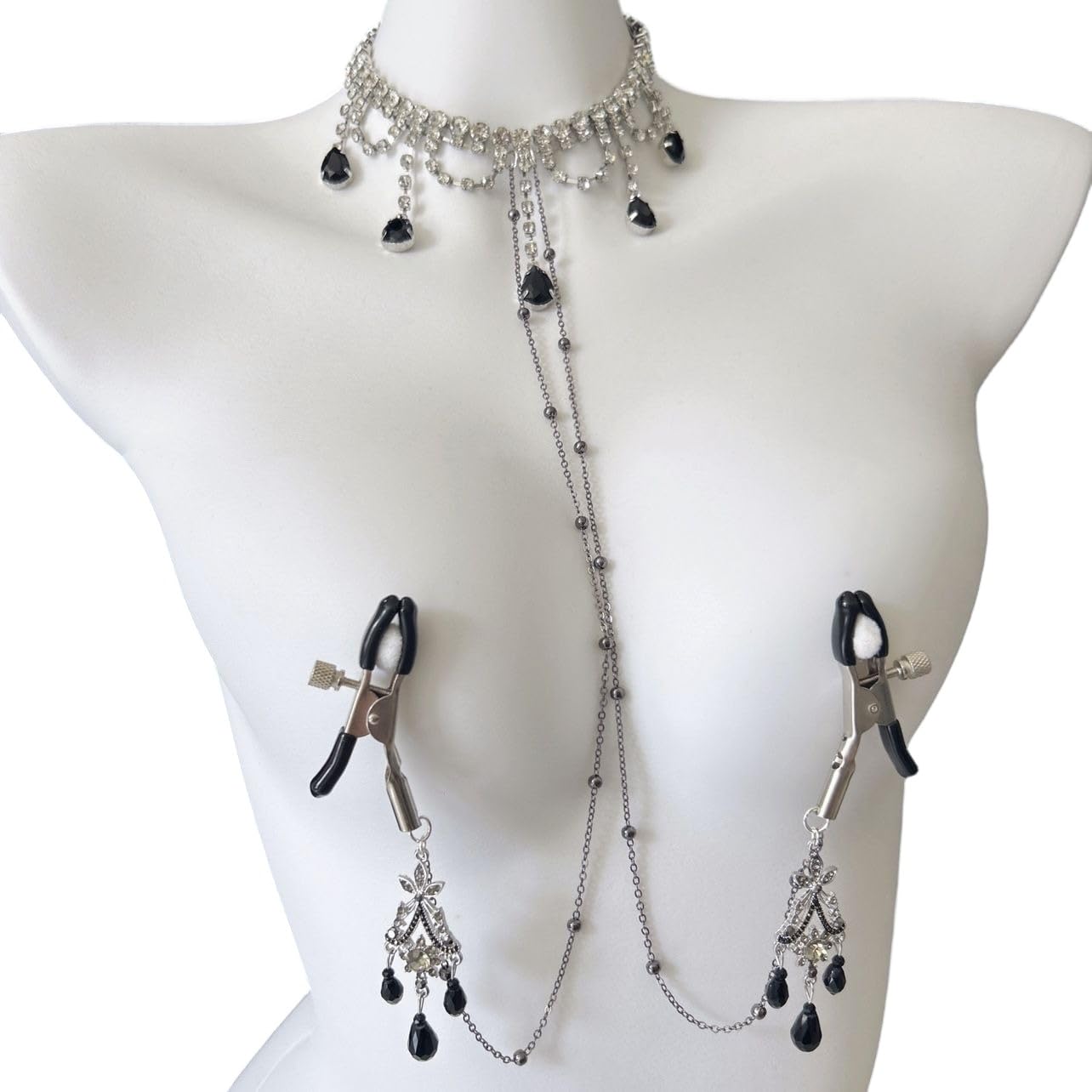OBMECYBaroque Black Swan Nipple Clamps with Chain Necklace - Adjustable Non-Piercing Sensory Toys for Women, Beginners Sensual Play (): Alligator Clips